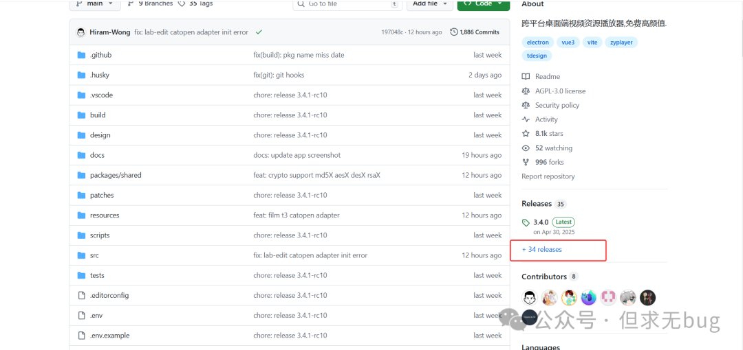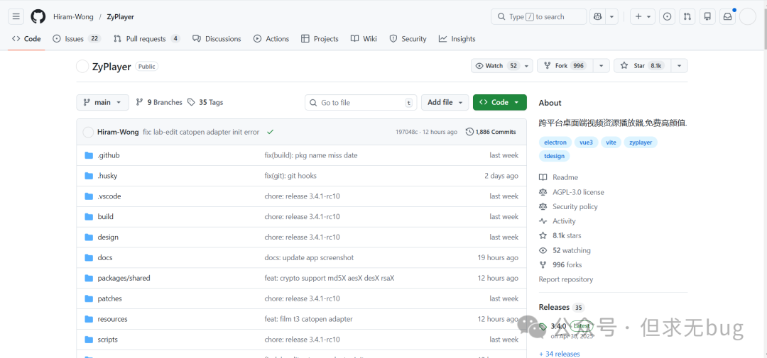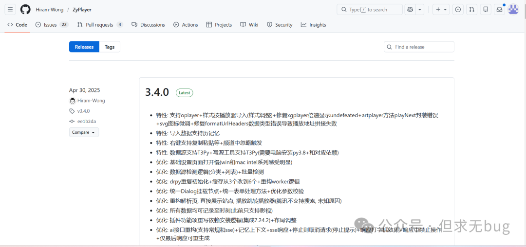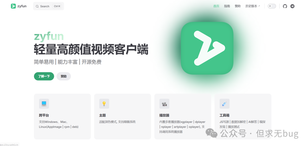 一、简介今天介绍的是另一款全能的视频播放器:ZyFun,该工具可以说是 ZY-Player的 fork 版本。在 ZY-Player 停更后,由另一作者进行迭代更新。相对 ZY-Player而言,ZyFun 看起来更为精致,功能也更为强大,可以说是很不错的一个工具。不过,ZyFun 虽从 ZY-Player 继承而来,但两者的视频源格式确有所差异,并不能完全兼容。 其官网地址为:https://zy.catni.cn/  当然,其也有对应的GitHub 托管仓库:https://github.com/Hiram-Wong/ZyPlayer  因国内访问 GitHub 不稳定,因此大家考虑使用 Watt Toolkit 工具进行加速访问。具体使用方法可翻看本人以往的文章,此处便不再赘述。 二、下载对于ZyFun 的下载而言,只需在 GitHub 托管仓库首页点击右侧的 “Releases”:  点击后便会便会跳转到 “Releases”列表页:  从上可知,最近发布的版本为 3.4.0。向下滑动找到 Assets 模块后选择合适的版本进行下载即可,本人下载的是:  下载后如下所示:
