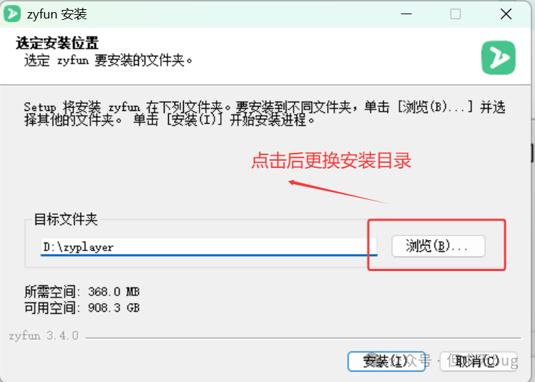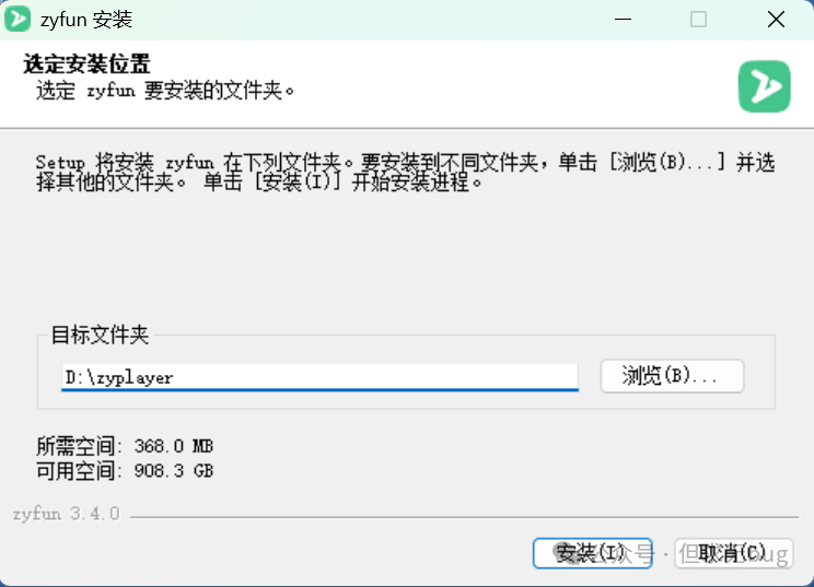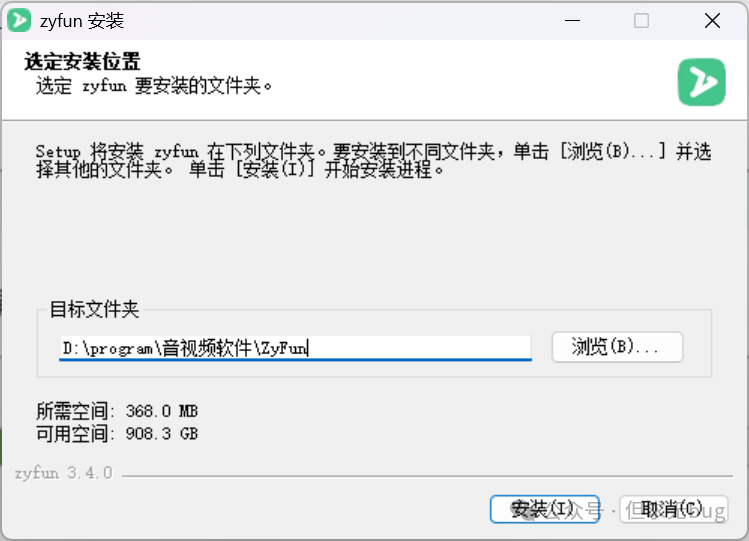 双击刚才下载的安装后,点击后弹出如下提示信息:  此时只需点击“更多信息”便会出现“仍要运行”按钮:  继续点击“仍要运行”便会开始真正安装,首先需配置安装目录:  与 ZY-Player 不同,ZyFun 默认会安装在D盘,不过也可点击“浏览”进行更换:  本人更换后的安装目录如下所示:  接着点击“安装”便会开始进行安装:  等待一会,安装完毕后如下所示:  点击“完成”便会完成程序安装。若勾选了“zyfun” 选项,则会自动运行该软件,运行后的主页面如下所示: